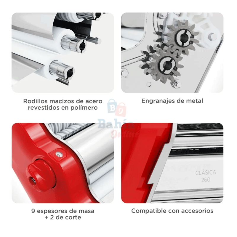 • Ancho de rodillo/hoja de masa 26 cm