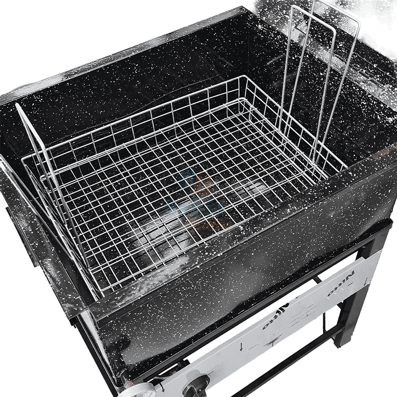 – Canasto con tapa de alambre cincado y tapa regilla, que no deja que nada flote, asi hay una coccion pareja.